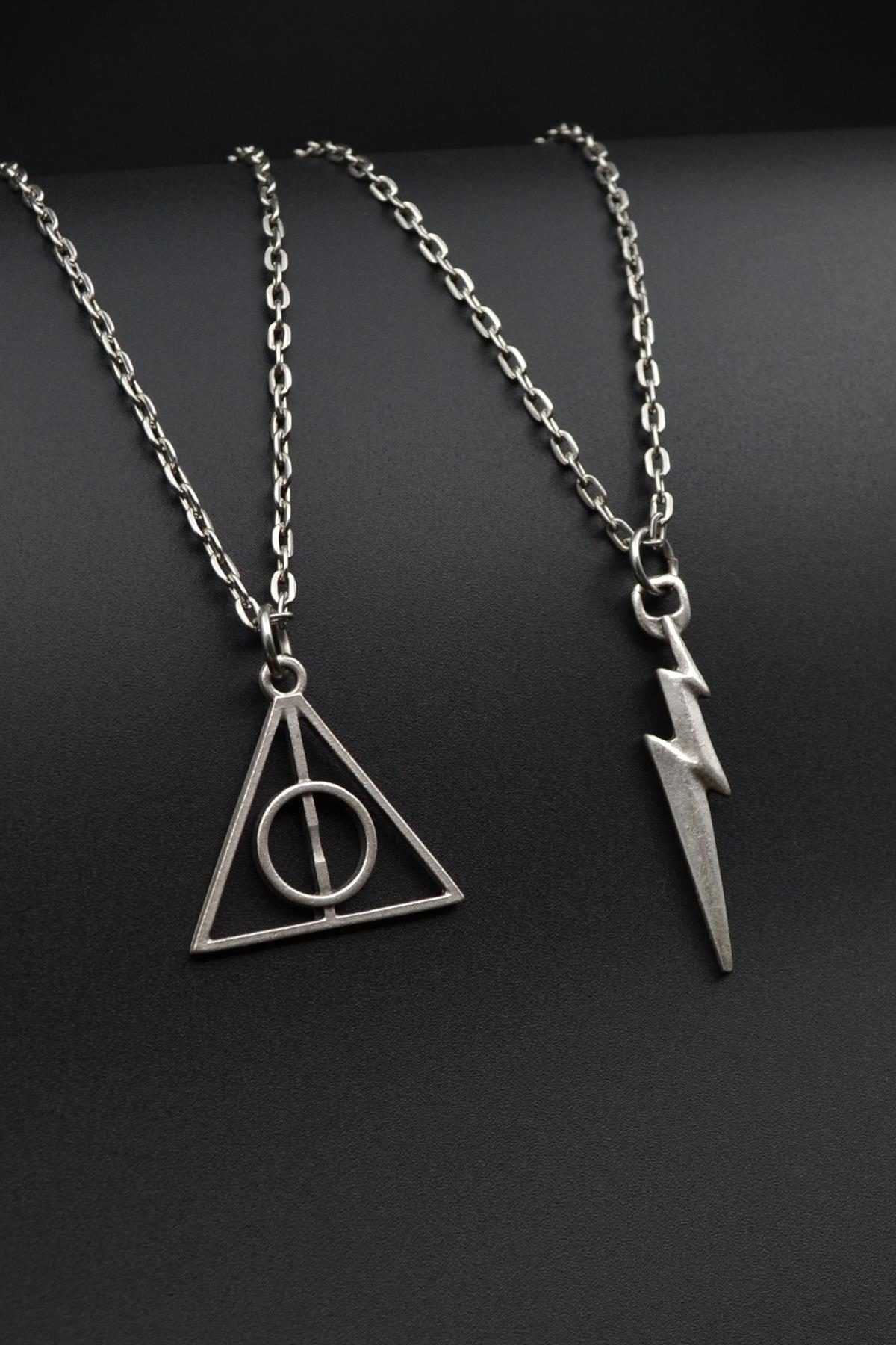 2'li Harry Potter Ölüm Yadigarları Üçgen - The Flash Erkek Kadın Kolye Seti